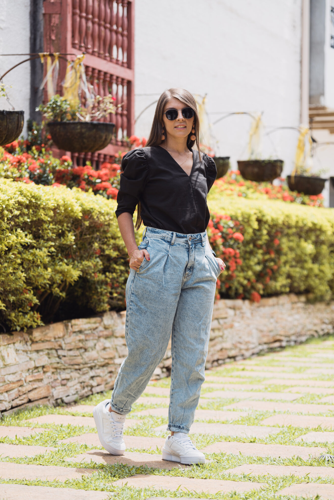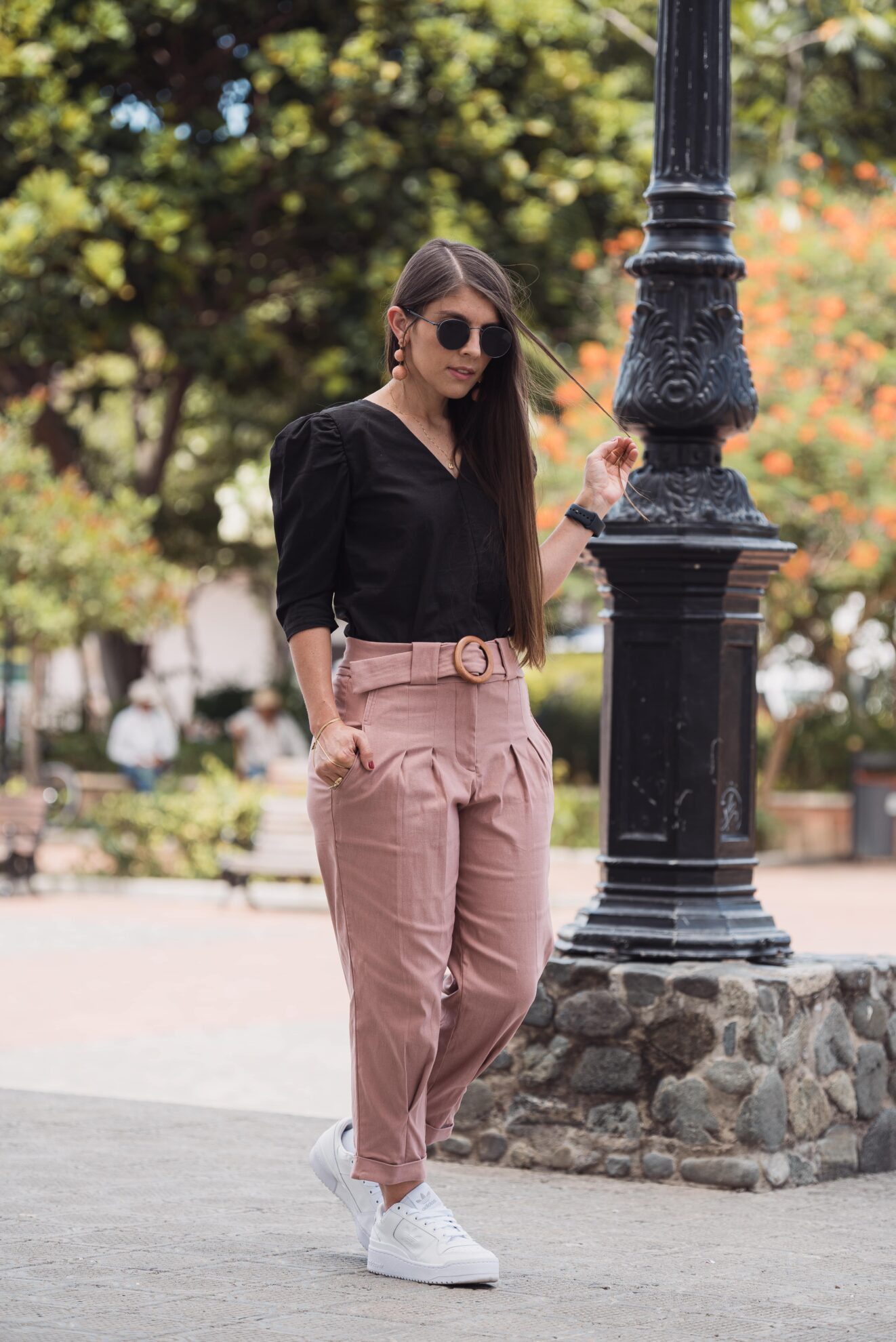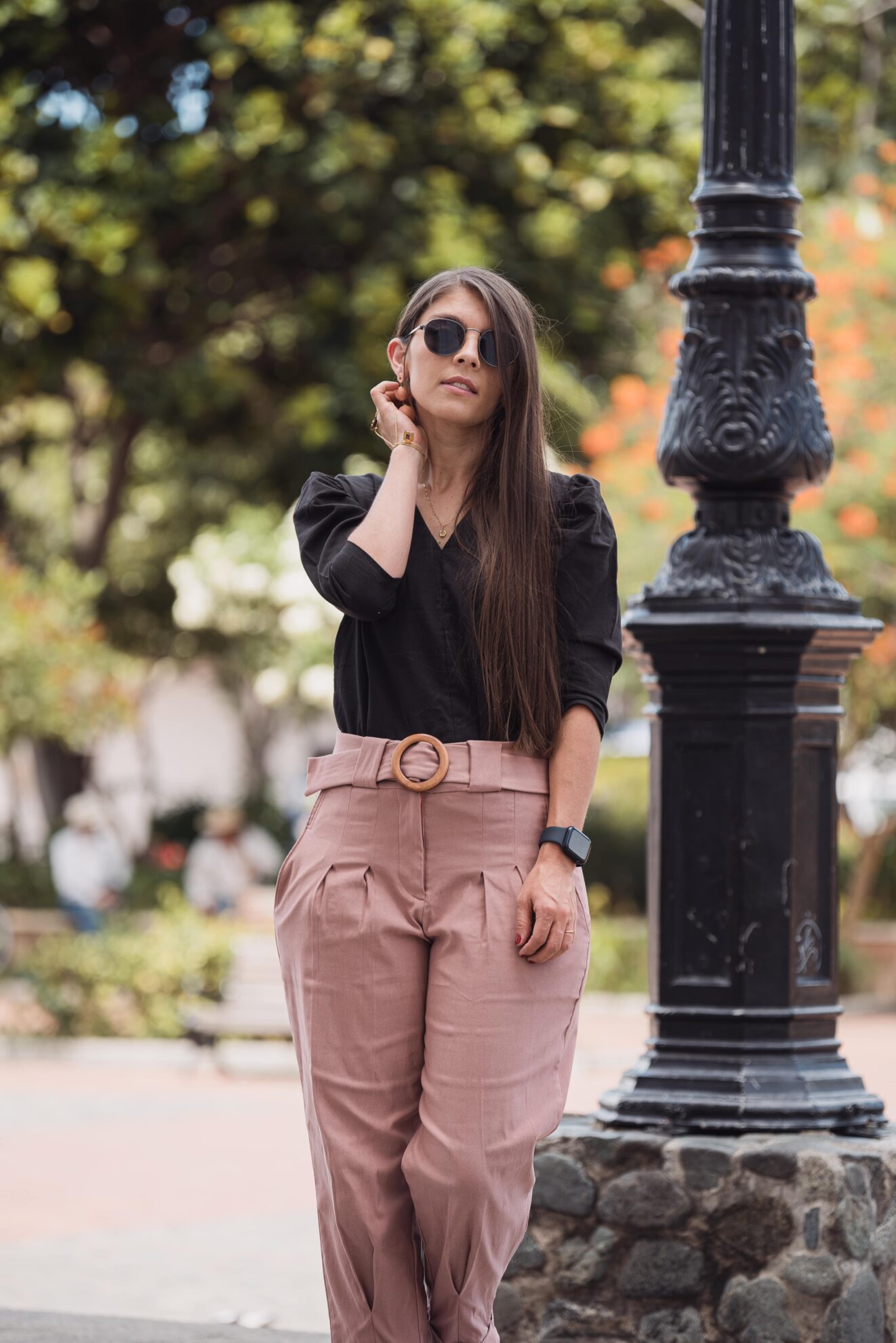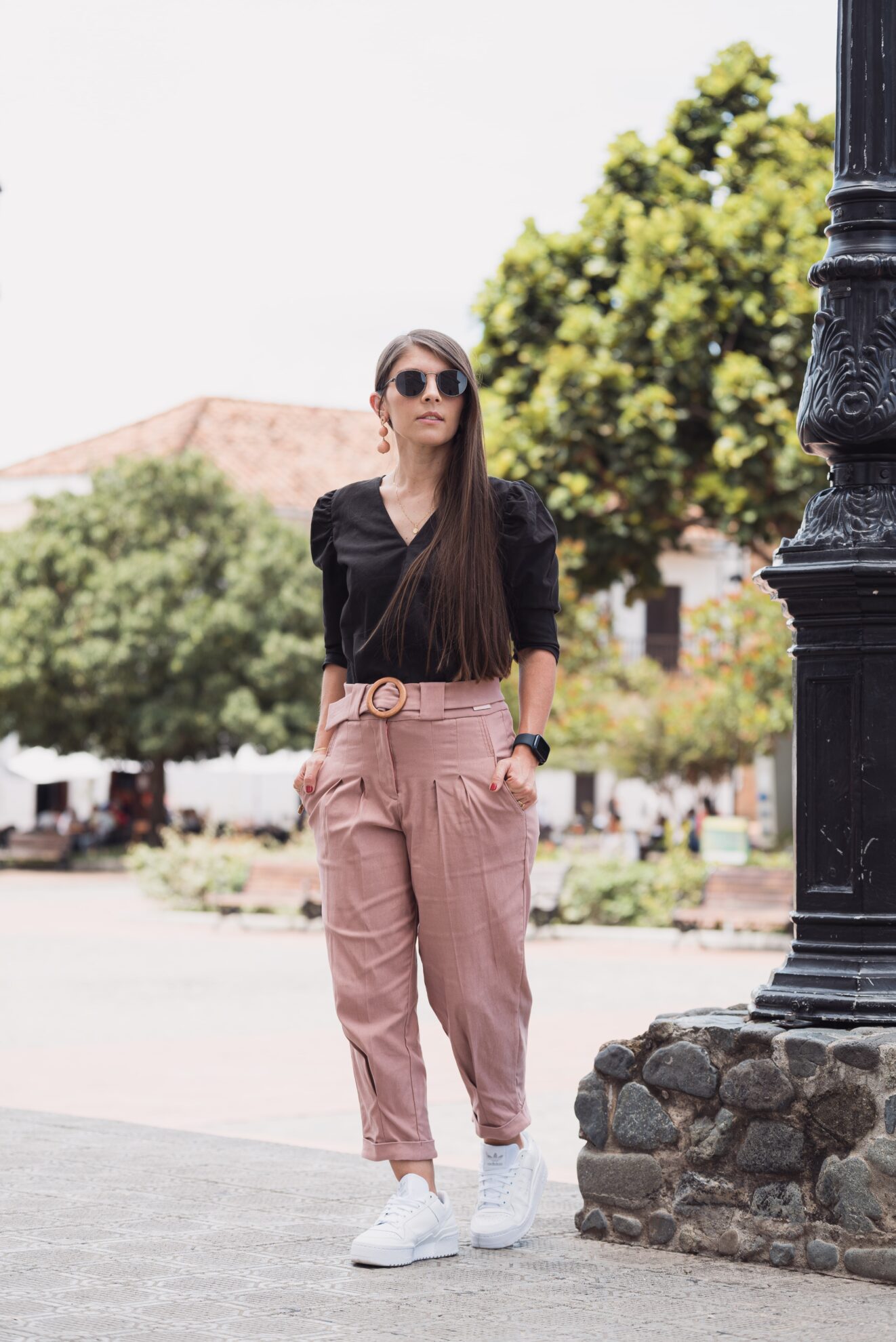 Modelo usa talla S y mide 1.59 m.