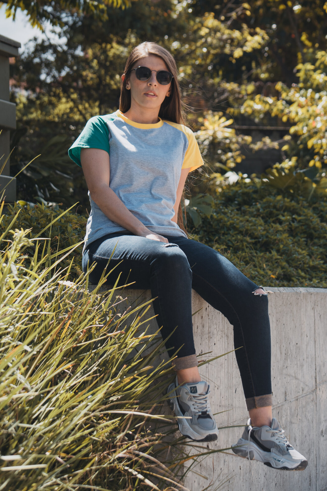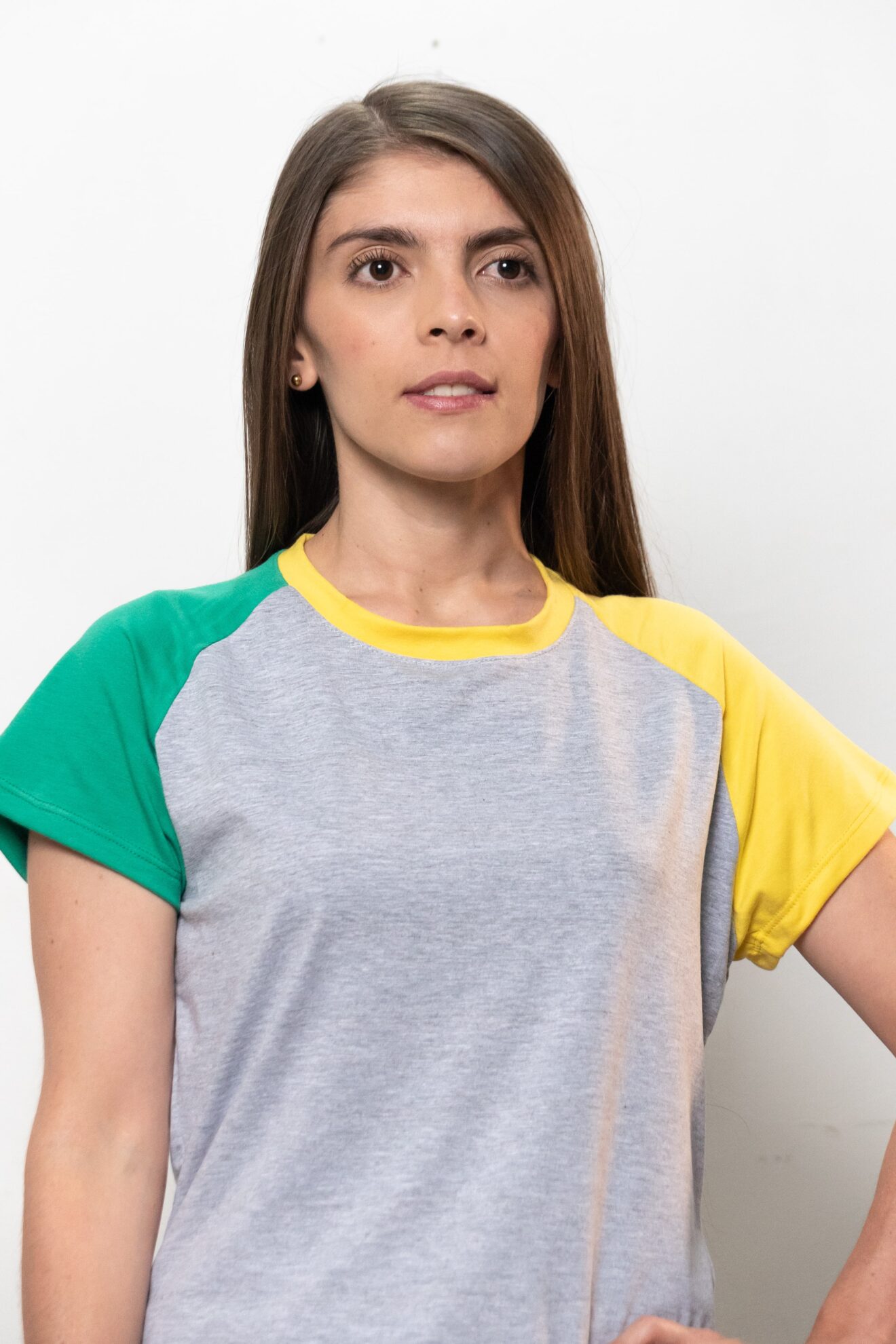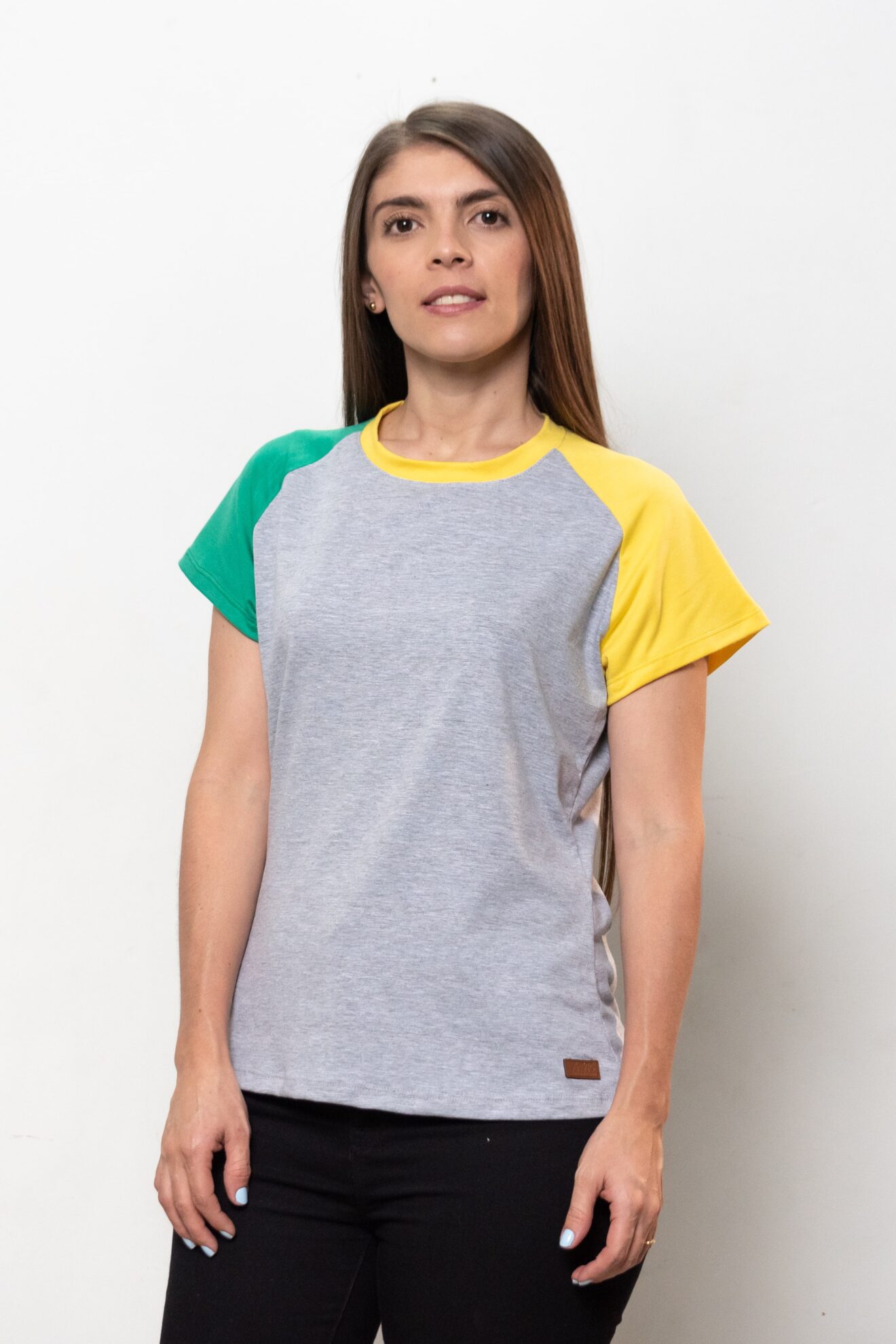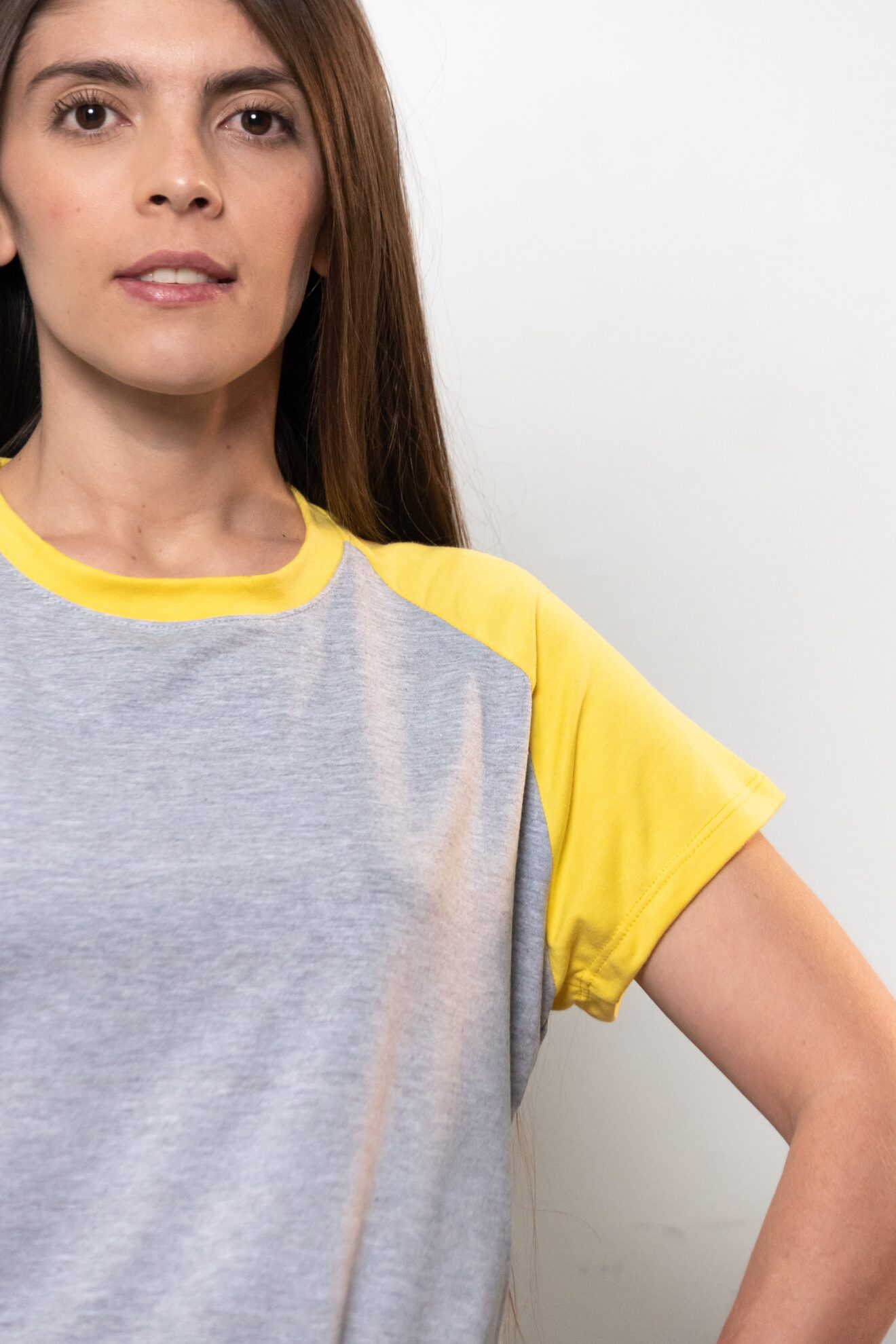 Camiseta básica para mujer, cuello redondo, manga corta y silueta holgada.