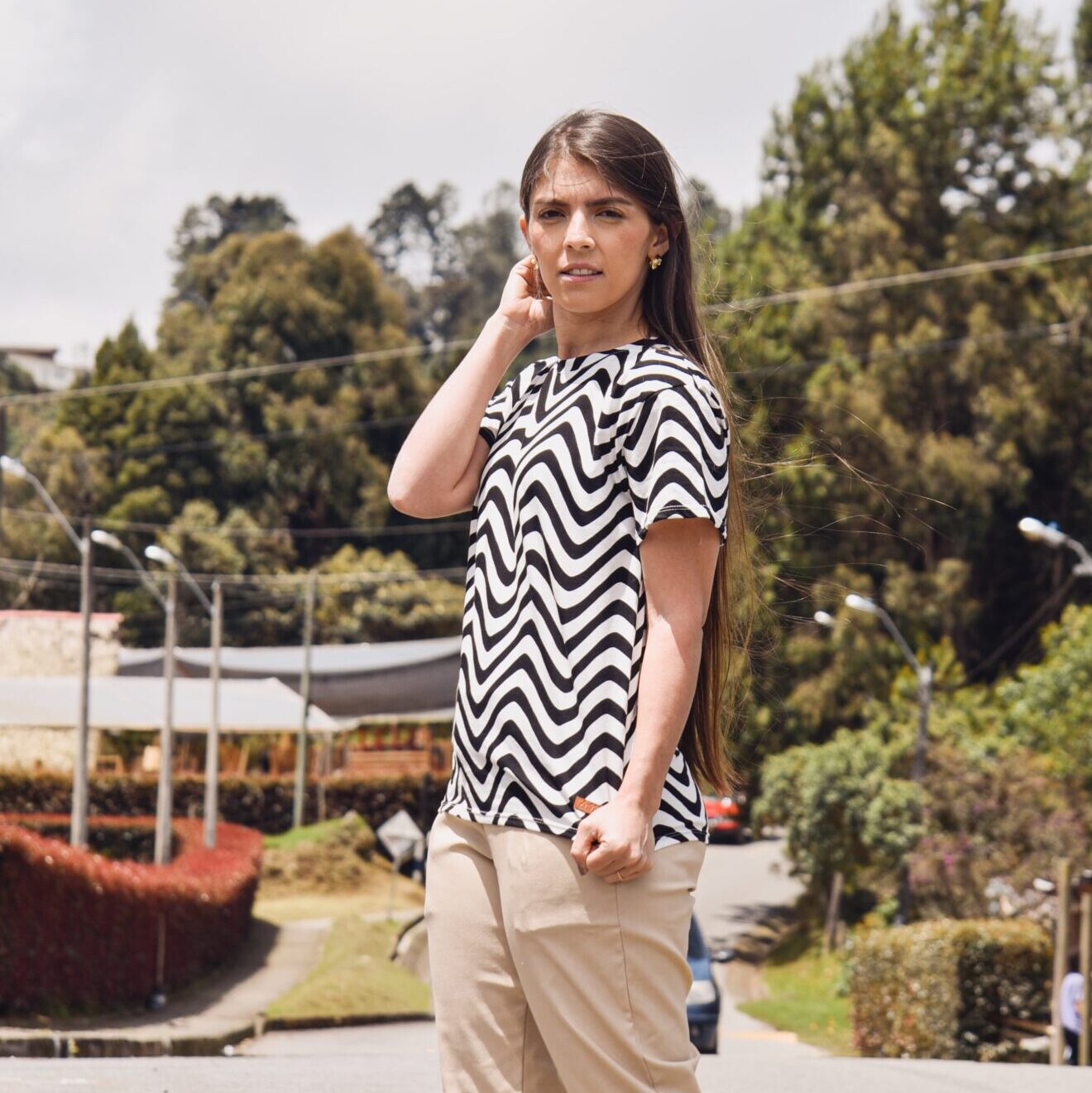 Camiseta básica para mujer, cuello redondo, manga corta y silueta holgada.