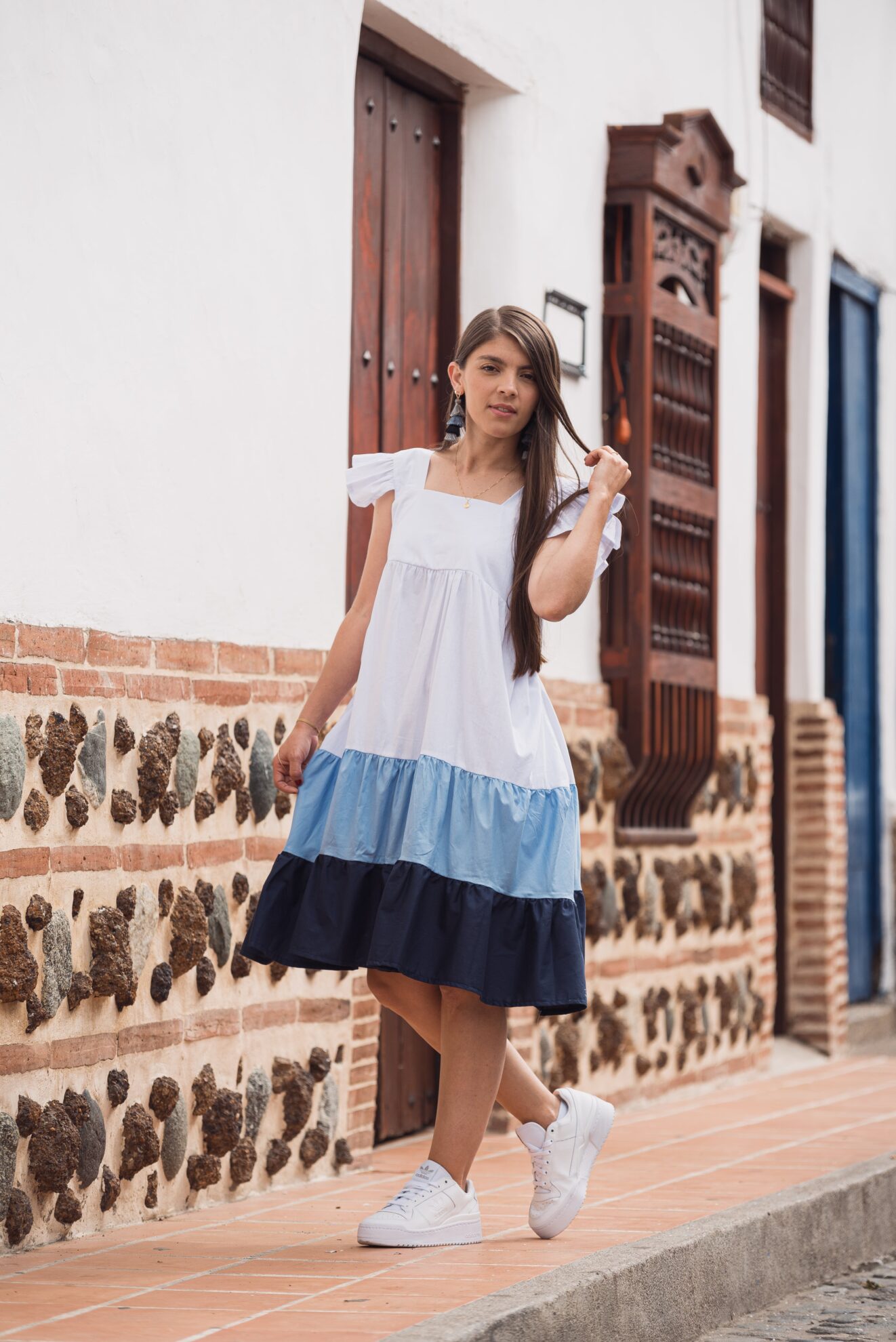 Vestido para mujer, cuello rectangular, manga sisa y silueta holgada.