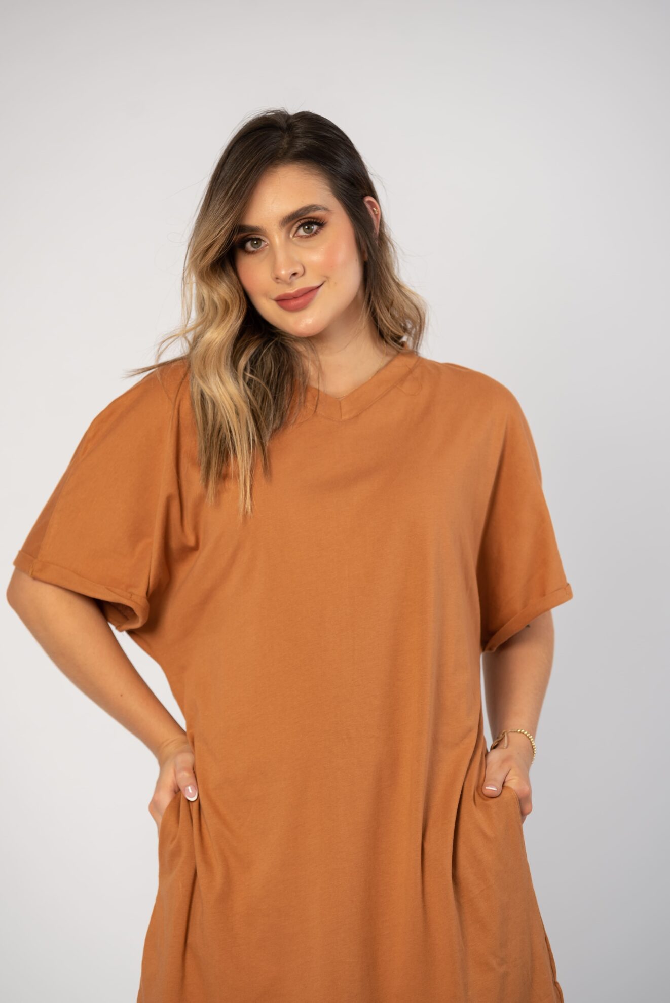 Vestido estilo Oversize para mujer, con bolsillos laterales.